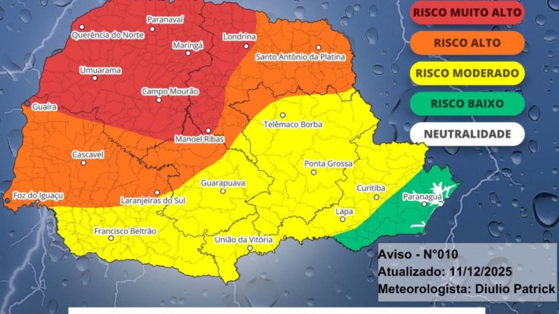 O ciclone extratropical que causou impactos no tempo no Paraná nesta semana já foi embora, mas outro fenômeno meteorológico se formou e, segundo o Sistema de Tecnologia e Monitoramento Ambiental do Paraná (Simepar), tem o potencial de formar supercélulas (tempestades severas) no Estado entre esta sexta-feira (12) e sábado (13).