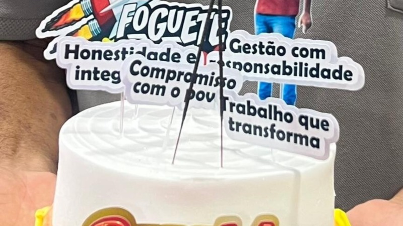 Servidores públicos presenteiam o gestor público com um bolo