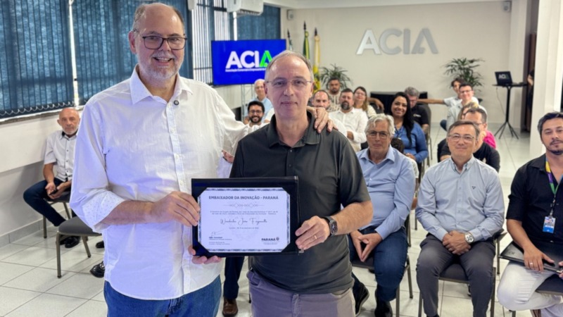 Apucarana vem se destacando nos cenários estadual e nacional pelo fortalecimento do seu ecossistema de inovação, o Conecta Apucarana, que nasceu dentro da ACIA. Esse protagonismo foi reconhecido na tarde desta sexta-feira (16), com a entrega do título de Embaixador Estadual da Inovação ao ex-presidente da ACIA e atual presidente do Conecta Apucarana, Wanderlei Faganello.