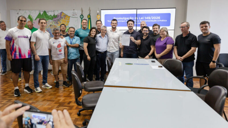 O prefeito Rodolfo Mota sancionou nesta terça-feira (20/01) a Lei Municipal nº 149/2026, que institui a Política Municipal de Incentivo às Corridas de Rua no município. De autoria dos vereadores Moisés Tavares (PP), Danylo Acioli (MDB), Eliana Rocha (Republicanos) e Odarlone Orente (PT), a legislação tem como objetivo estimular a prática esportiva, promover hábitos saudáveis e organizar o calendário de eventos ligados à corrida de rua na cidade. Ao assinar a lei, Mota destacou que a iniciativa fortalece a vocação esportiva de Apucarana e amplia políticas públicas voltadas à saúde preventiva. “Estamos organizando e dando segurança jurídica a uma prática que já faz parte da rotina da cidade. Corrida de rua é saúde, integração social e qualidade de vida”, afirmou o prefeito.