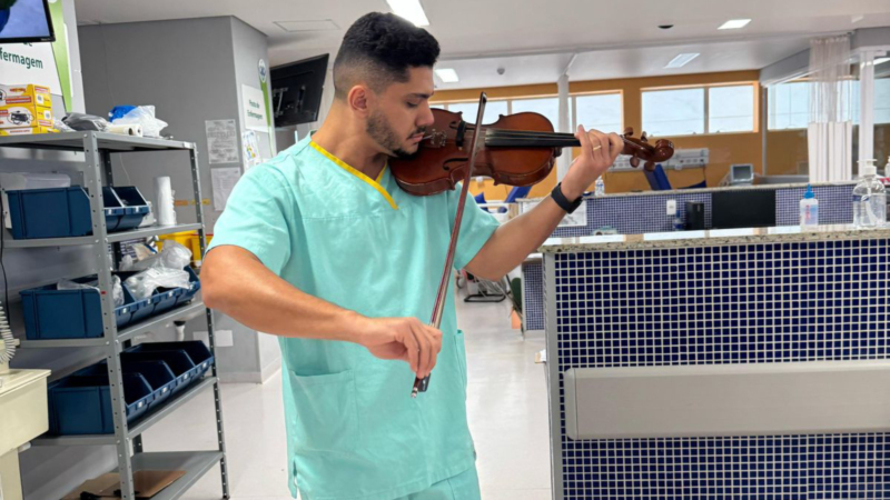 O projeto é desenvolvido pelo médico Joasly Belacusa, que também é violinista. Ele leva o instrumento à unidade e faz apresentações em áreas comuns e próximas aos leitos, envolvendo pacientes, equipes de enfermagem, médicos e demais profissionais. A proposta é utilizar a música como recurso de acolhimento, promovendo conforto e leveza no ambiente hospitalar.