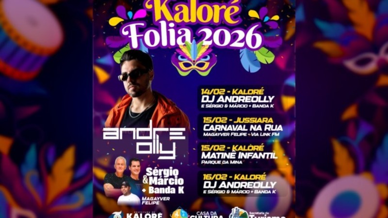 A Prefeitura de Kaloré, por meio da Secretaria Municipal de Cultura e Turismo, realiza entre os dias 14 e 16 de fevereiro o Kaloré Folia 2026, evento que integra a programação oficial de Carnaval do município e da região. Com atrações musicais, atividades para crianças e eventos descentralizados, a festa foi planejada para atender públicos de todas as idades, valorizando a cultura popular e promovendo lazer à comunidade.