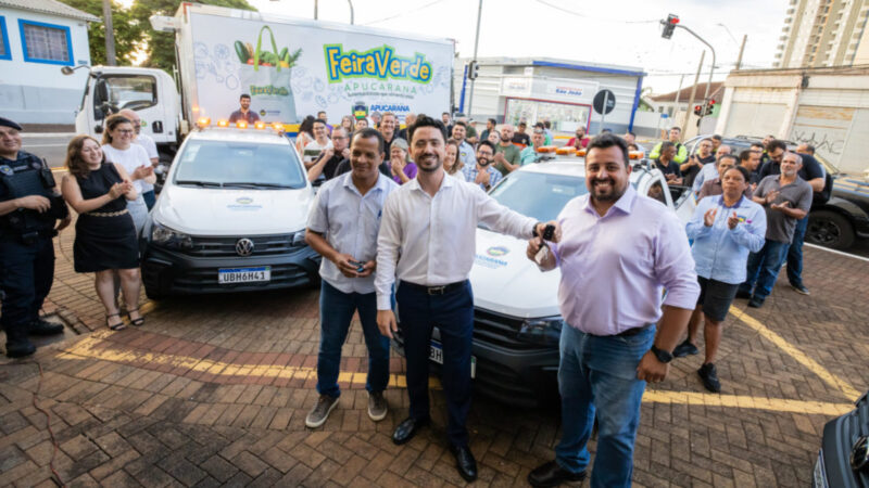 A Prefeitura de Apucarana reforçou nesta quinta-feira (12/02) a estrutura do Programa Social Feira Verde e o Departamento de Trânsito com a entrega de veículos zero quilômetro. A solenidade de entrega das chaves foi realizada em frente ao Paço Municipal e marcou mais um investimento voltado à melhoria dos serviços prestados à população.