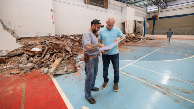 As obras começaram nesta terça-feira com a demolição do palco localizado na parte frontal da quadra, executada pela DAX Construtora Ltda., empresa vencedora do processo licitatório. A medida é necessária para a ampliação do espaço de jogo e adequação às dimensões oficiais. “Atualmente, a nossa quadra possui 18 metros de largura por 35,99 metros de comprimento. Para modalidades como o futsal e o handebol, o tamanho exigido é de 20 por 40 metros. A adequação da quadra às medidas oficiais, somada à implantação de piso modular e à instalação de 2,5 mil assentos individuais nas arquibancadas, permitirá que o ginásio volte a sediar competições oficiais”, detalhou o secretário.