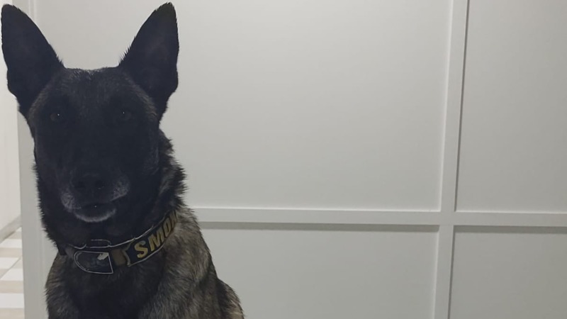 Ao entrarem na rua, os policiais militares abordaram um homem de 20 anos e uma adolescente de 16 anos que estavam sentados na calçada. Durante a busca pessoal, nada de ilícito foi encontrado. No entanto, com o uso de um cão farejador (foto), a equipe localizou entorpecentes escondidos no interior de um tijolo no muro de uma residência abandonada, onde havia uma bucha com pedras de crack e uma pequena porção de cocaína.
