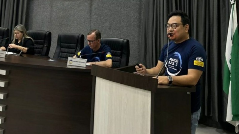 A Câmara Municipal de Apucarana abordou, durante a sessão ordinária realizada na noite desta segunda-feira (23), a importância da prevenção e do combate ao câncer de intestino. O tema foi apresentado pelo médico Eduardo Endo, secretário da Sociedade Paranaense de Coloproctologia, que utilizou o espaço Tribuna Livre para conscientizar a população sobre a campanha nacional Março Azul. O especialista veio a convite do vereador Moisés Tavares (PP).